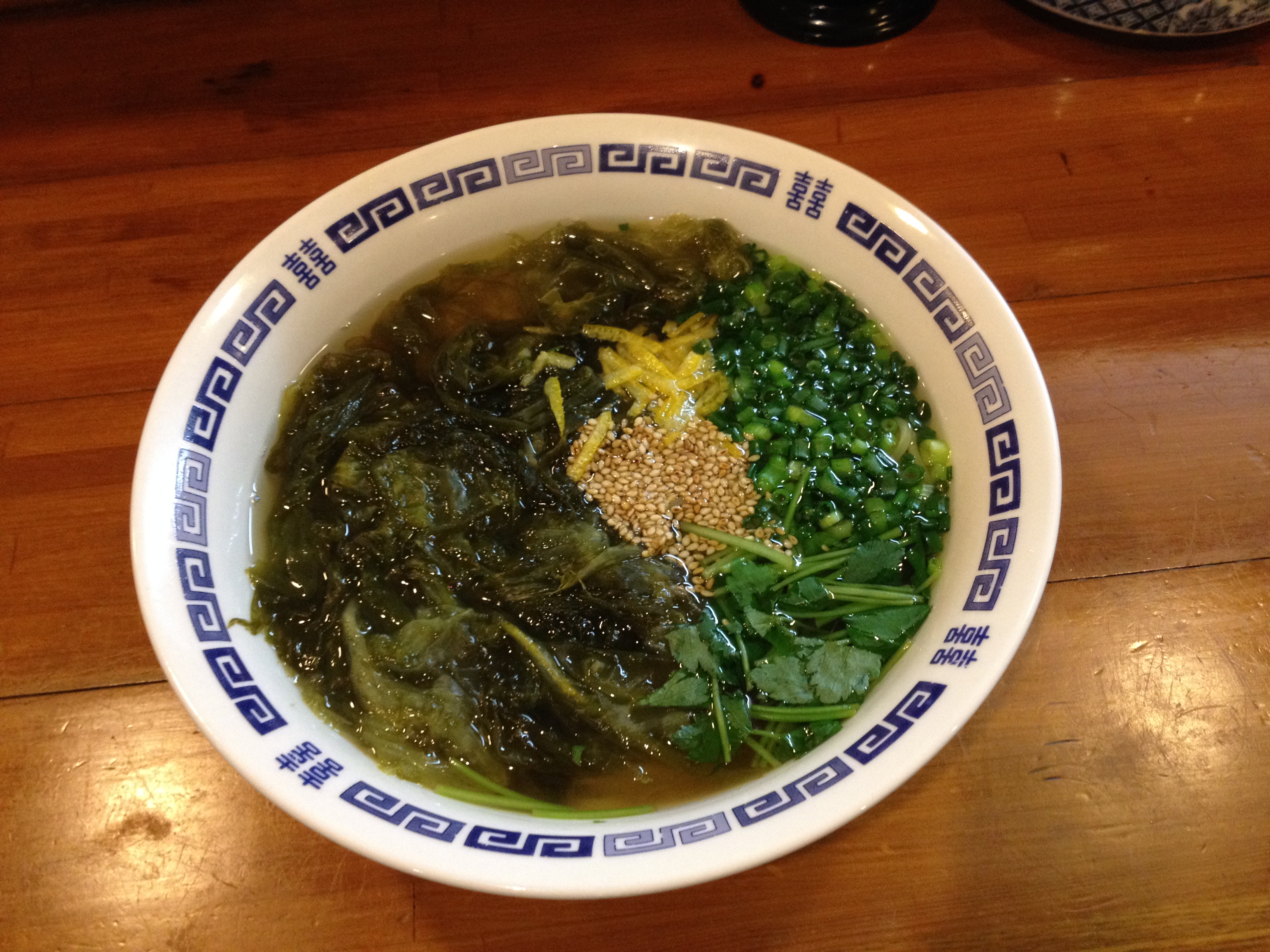 | Health Japanese style ramen with Ushio soup made with seaweed and fish, topped of with seasame, seaweed, green onions, citron, and mitsuba. | ||